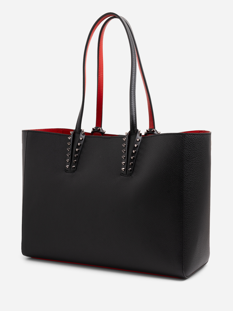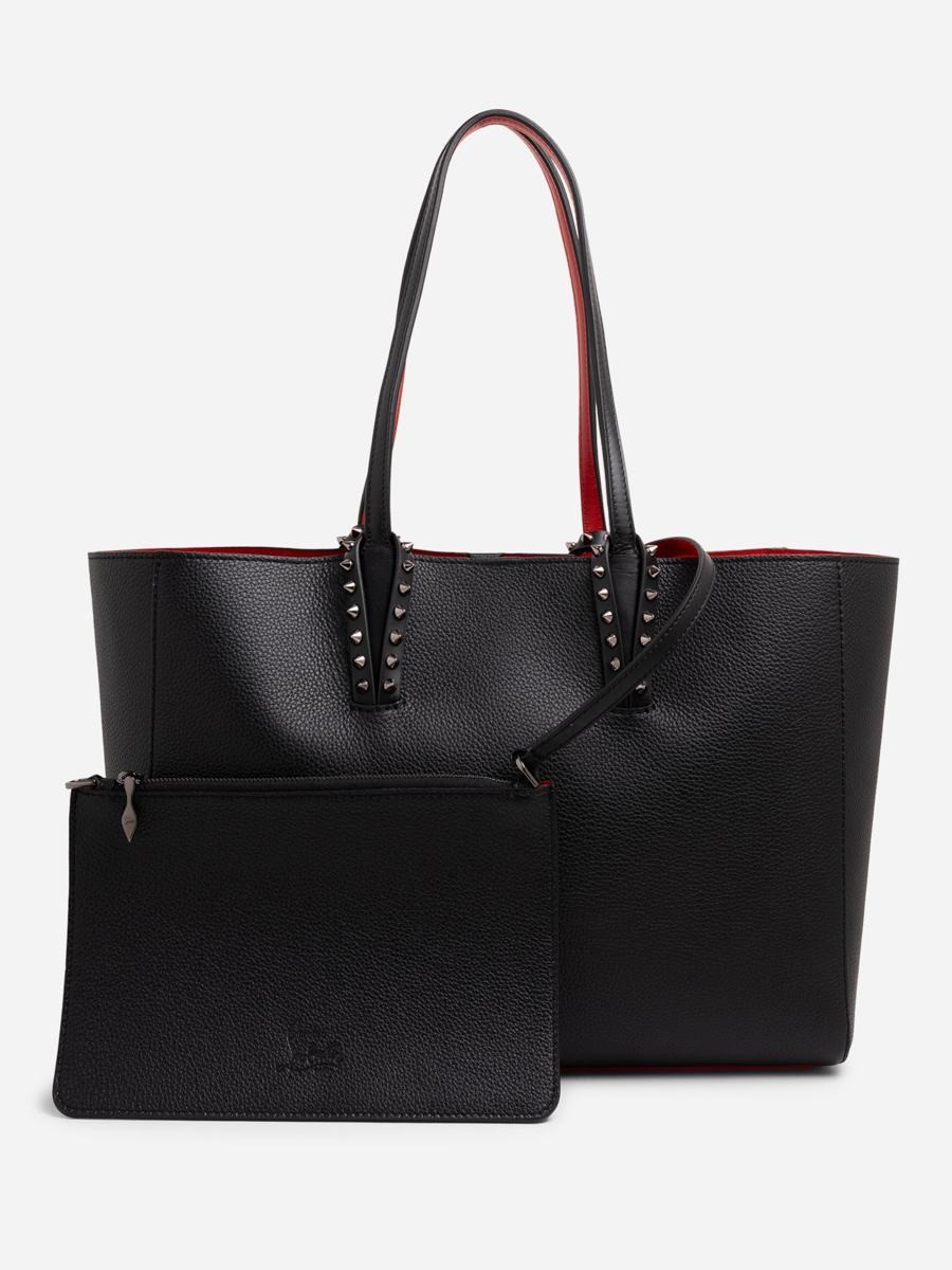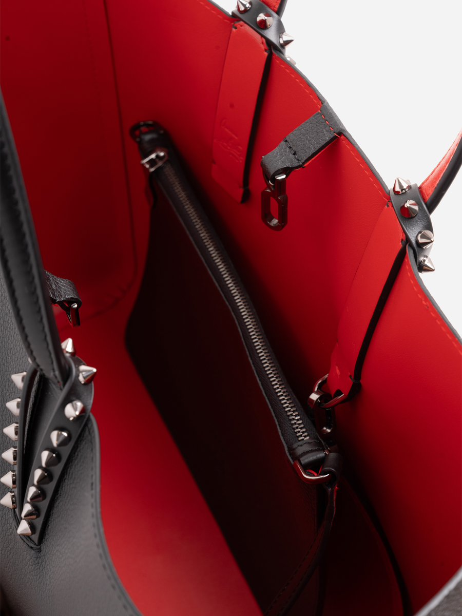 While Christian Louboutin has built its legacy on luxury and craftsmanship, the brand is increasingly aware of its environmental responsibilities. Cabata Small Tote Bag seduces with its sophistication and black calf leather, enhanced with gun metal spikes on the handles. Featured with subtle hints of Loubi red on the handle
