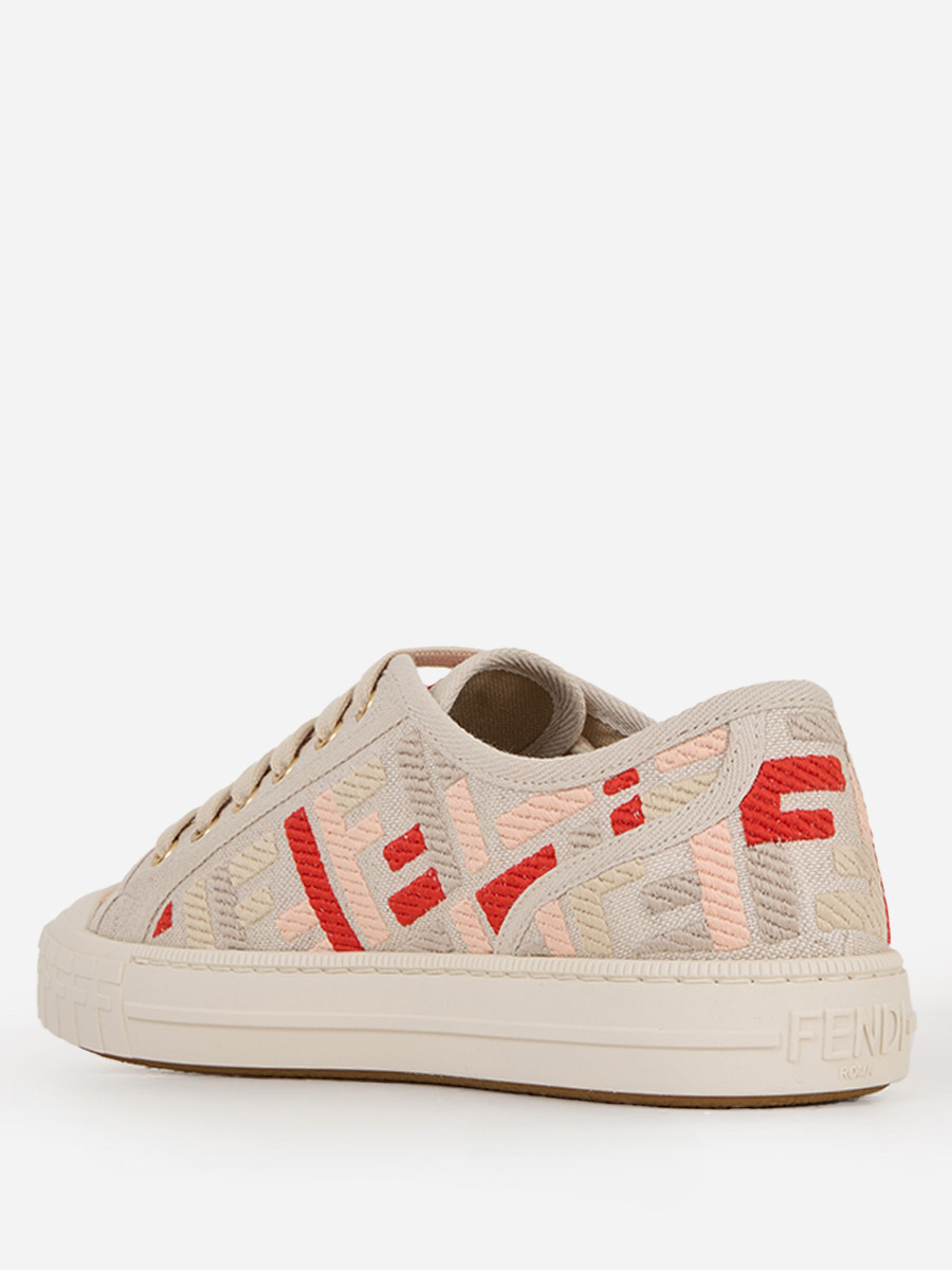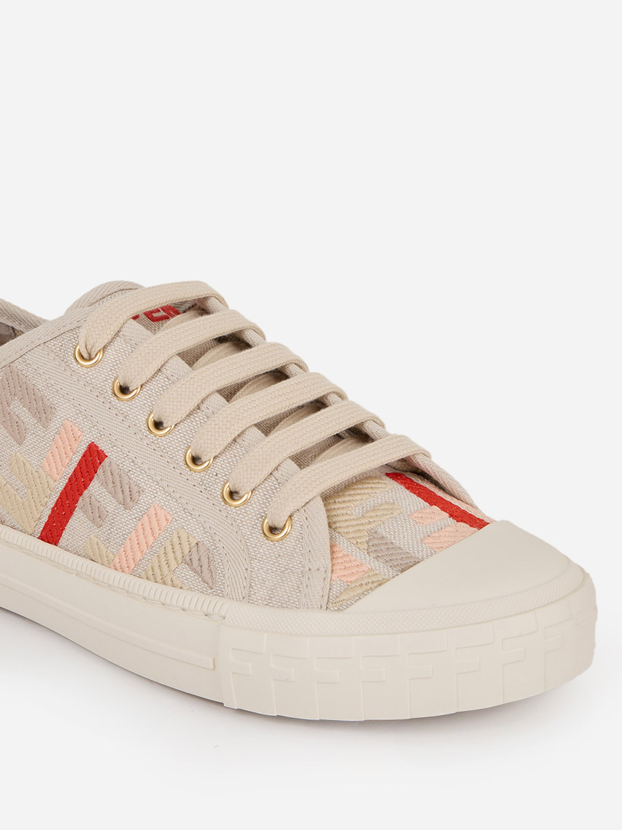 Fendi revolutionized the industry by treating it as a medium for innovation rather than tradition. Known for its unmatched ability. Domino Canvas Low Tops featured with Fendi Roma logo, rubber cupsoles, FF embroidery in multicolored yarn. Trimmed with tone-on-tone grosgrain ribbon. Finished with FF pattern superimposed on the toe.