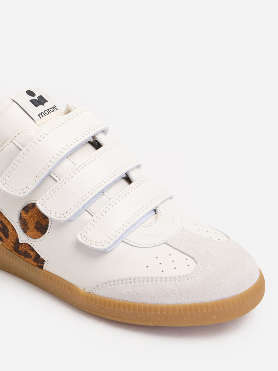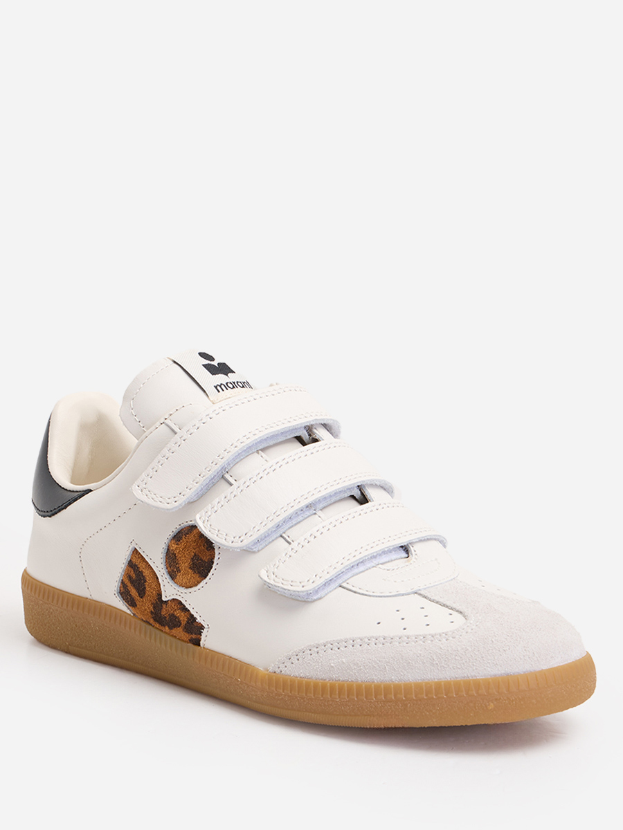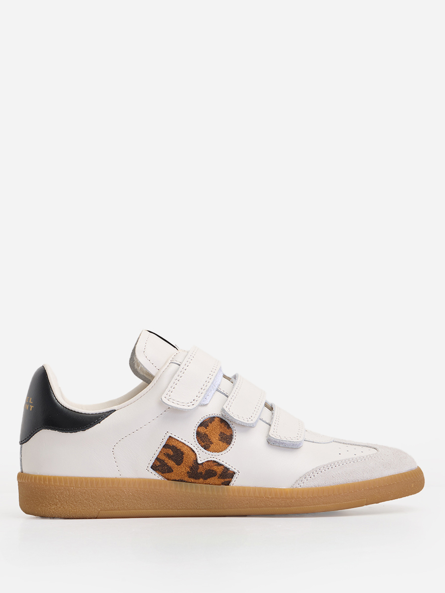 sabel Marant’s commitment to craftsmanship is all about authenticity and soul. Her team of artisans are integral to every collection. Beth Printed Low-Top Leather Sneakers in Calfskin leather and “Pony” style details with leopard print. Featured with round toes, padded tongue, Velcro straps and side yoke with contrasting “IM” logo.